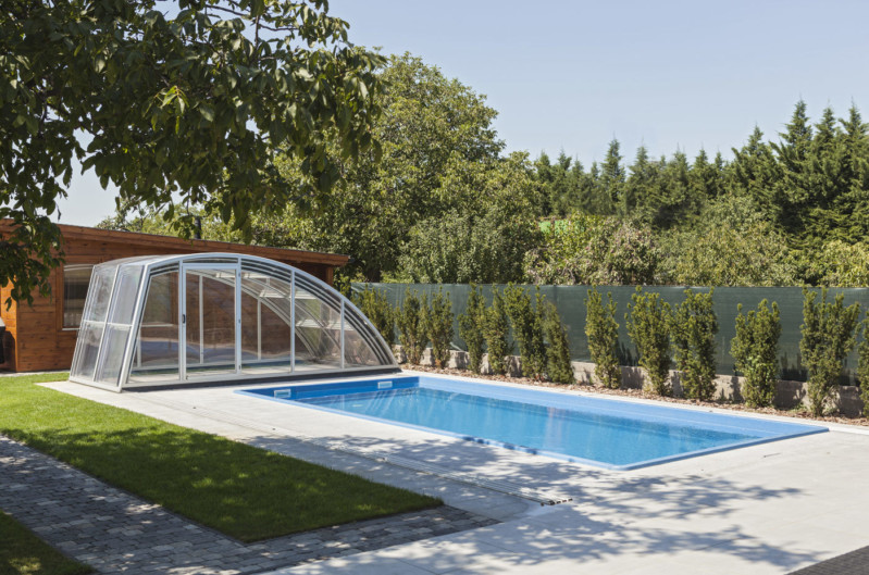 A PRACTIC modellt aszimmetrikusan megemelt, enyhén döntött sík oldalfallal gyártjuk. A szerkezeti magasság az oldalfal mentén biztosítja a medence hosszirányú járhatóságát.